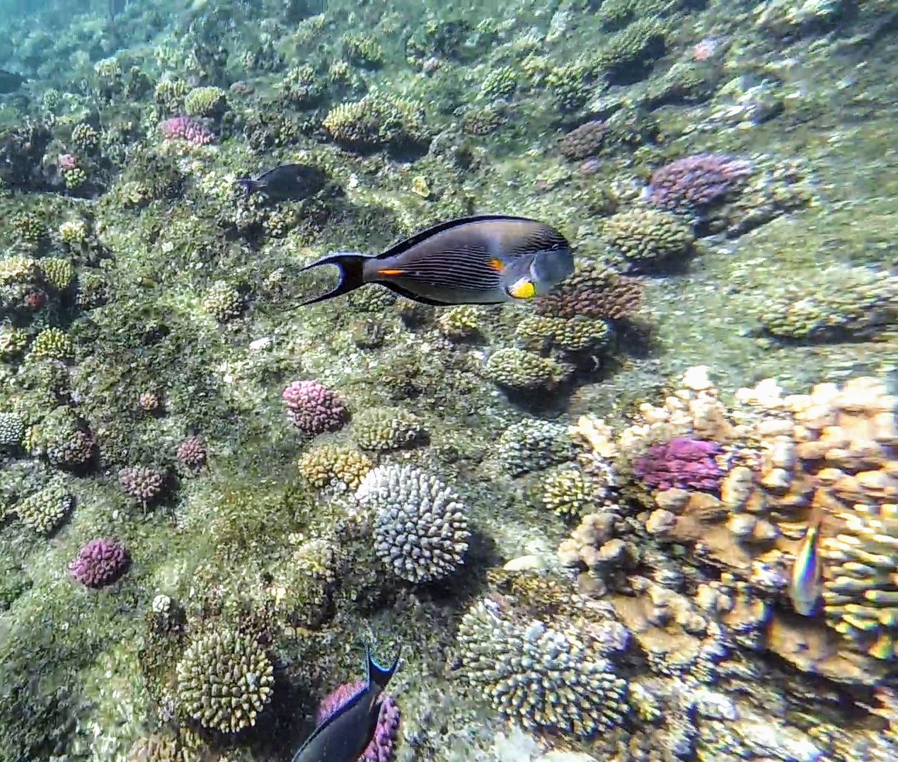 The second dive on this trip was to swim among a colorful reef. Swimming in a tunnel formed by corals is something which we have never done so far. It felt like being part of a NatGeo film for the underwater world of Red Sea near Egypt. On the way to the reef, our guide showed us on his phone a picture of a fish he saw once- Spanish Dancing Fish. I put a link with some photos because I have never seen anything like this. No need to say that during the whole snorkeling we were trying to spot it, but with no success. Maybe next time we will be lucky enough.