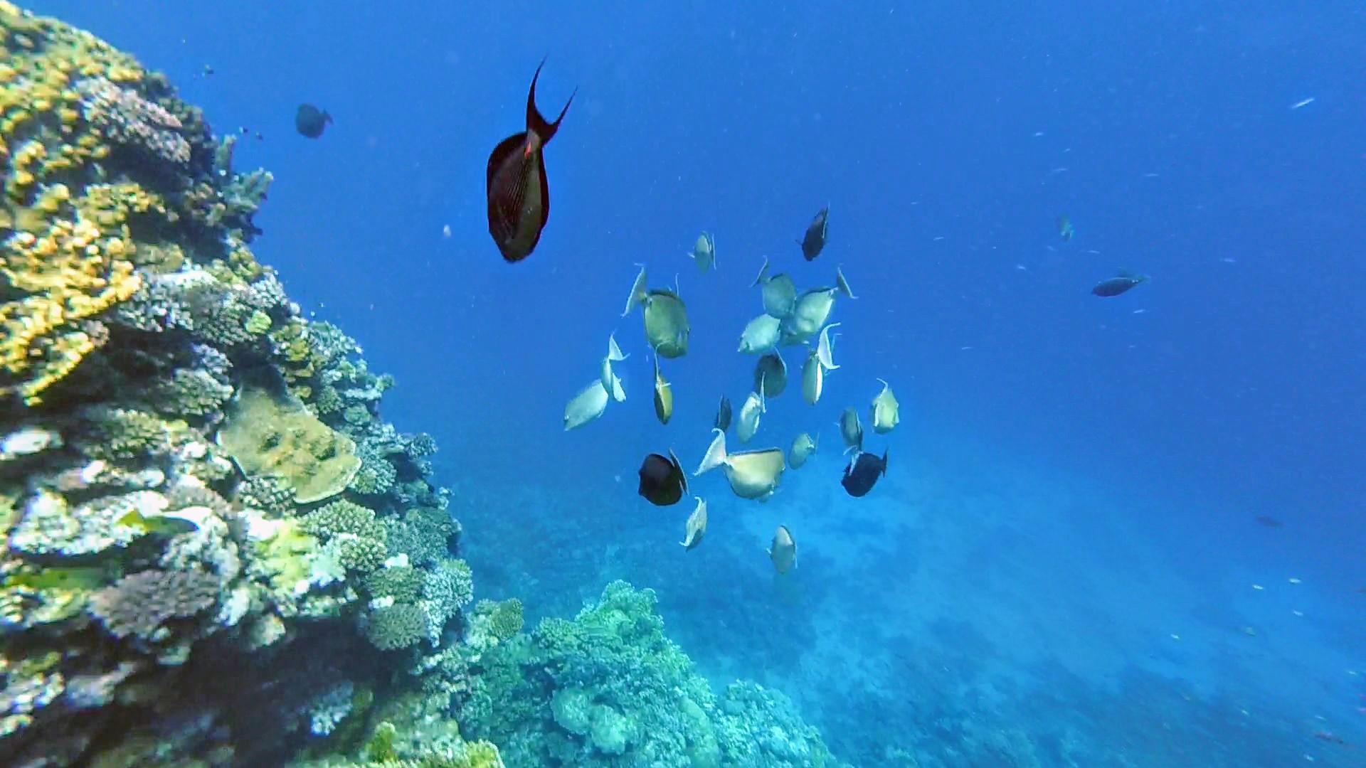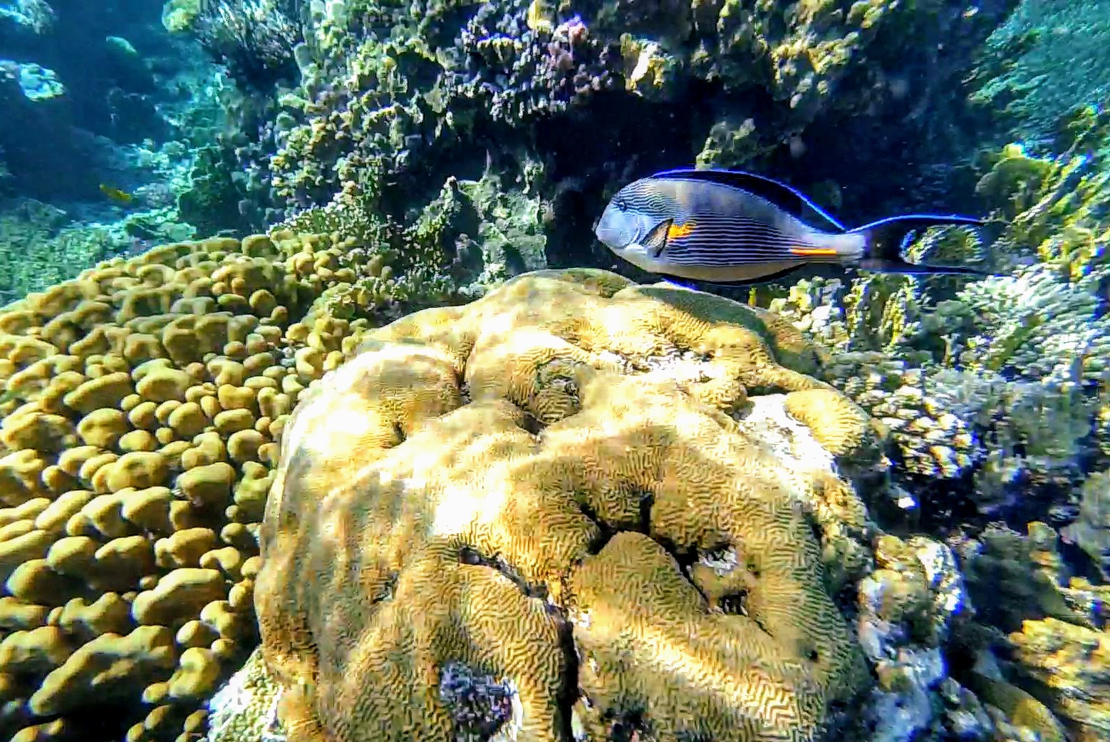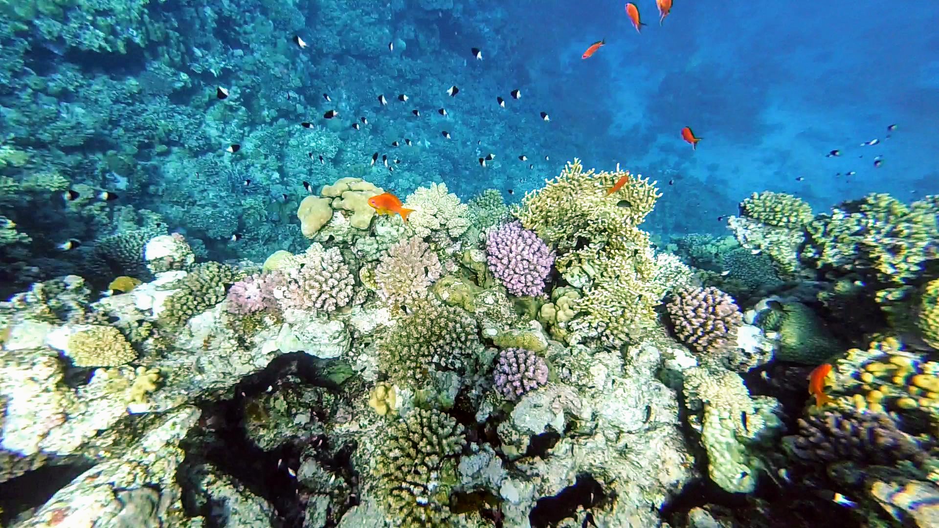 Swimming among colorful corals